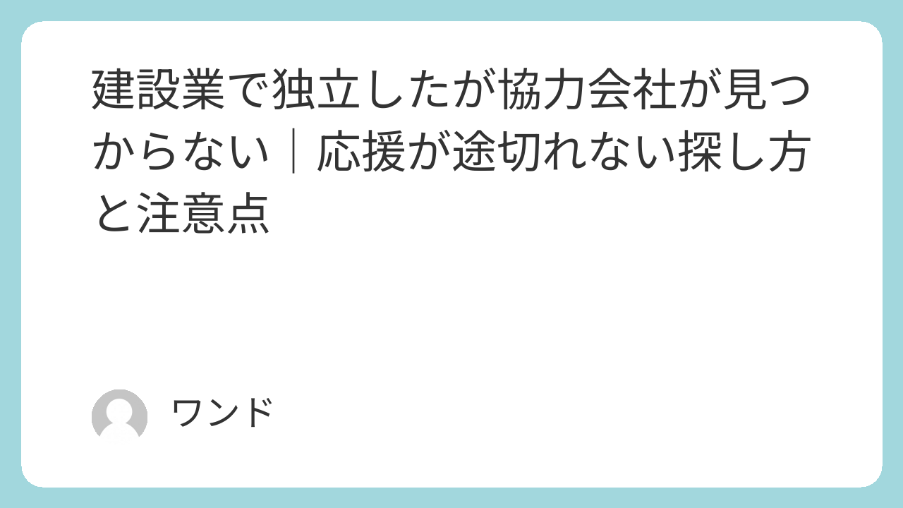 建設業で独立したが協力会社が見つからない|応援が途切れない探し方と注意点