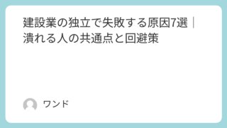 建設業の独立が失敗する原因は「仕事の入口が1つ」「資金繰り」「単価設計」など7つに集約されます。本記事では潰れる人の共通点と、独立前にできる回避策を具体的に解説します。