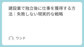 建設業で独立後に仕事を獲得する方法を初心者向けに解説。一人親方が失敗しやすいポイントと、元請・協力会社との関係を活かした現実的な仕事獲得戦略を紹介します。