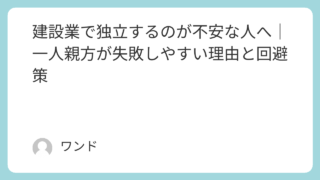建設業で独立するのが不安な人向けに、一人親方が失敗しやすい理由とその回避策を解説。漠然とした不安の正体と、独立前にできる現実的な準備方法を紹介します。