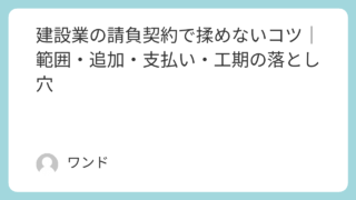 建設業の請負契約でトラブルが起きやすいポイント(作業範囲、追加工事、支払い条件、工期、瑕疵対応)を整理。口約束を減らす実務の型を解説します。